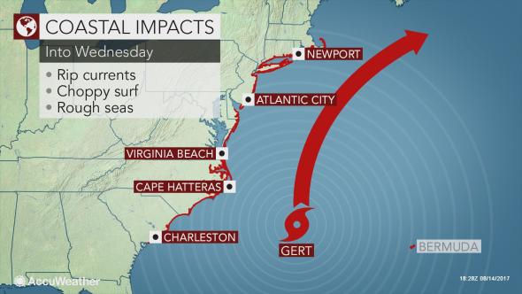 Tropical storm Gert will make the seas along the US East coast a bit unsettled this week. From Cape Cod down to the shores along the South Carolina coast is where the greatest impacts will be so we will have to watch what happens with this system as well as another one that may form in the Atlantic over the next few days. Stay updated to this site for all the latest, and more info on Gert can be found here - - https://www.accuweather.com/en/weather-news/brewing-tropical-storm-gert-to-spread-rough-surf-along-us-east-coast/70002444