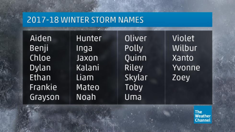 Winter Storm Names For 2017-18 Revealed