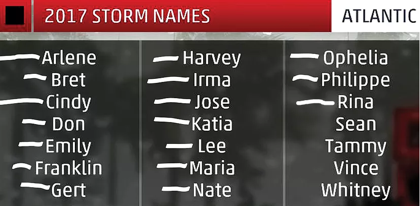 2017 Tropical storm names: The season so far, as of November 16