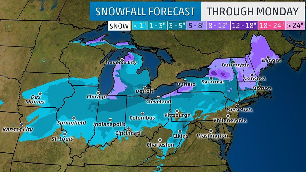 Winter Storm Ethan Spreading Snow From the Midwest to the Northeast Through Christmas Day