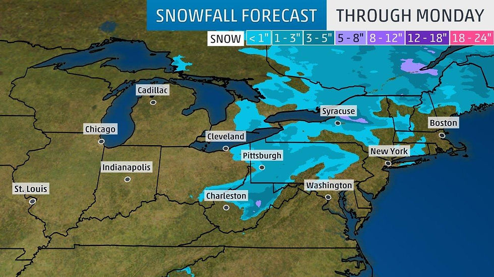 A mess of snow and ice could impact travel on Monday in the East. Overall not a lot of snow is expected with a widespread 1-4 inches of snow, with some slightly higher isolated amounts possible. Here is a link to more info about this - https://weather.com/storms/winter/news/2018-01-04-snow-ice-storm-early-january-northwest-rockies-midwest-northeast