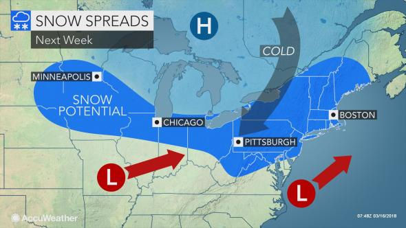 The first day of spring in the Northeastern US could be a wintry one due to a new weather system pushing in for the middle of next week. The snow potential next week, spreads all the way from the Midwest into the Northeast. A first low pressure system may miss New England early next week, but mid to late week another system could try to redevelop and bring the potential for more rain and snow. AccuWeather has more info about this right here: https://www.accuweather.com/en/weather-news/snow-rain-to-kick-off-1st-days-of-spring-in-northeastern-us/70004419