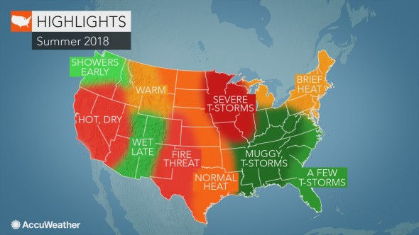 2018 US summer forecast from Accuweather: Early tropical threat may eye South; Severe heat, drought