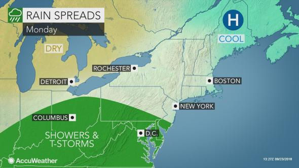 Rain and higher humidity will move into the Northeast around the time of midweek. Downpours and thunderstorms could cause localized flooding and travel delays. Cooler air will remain off to the north as the rain spreads northward this week. Here is more info about this here: https://www.accuweather.com/en/weather-news/rain-higher-humidity-set-to-return-to-the-northeast-this-week/70006143